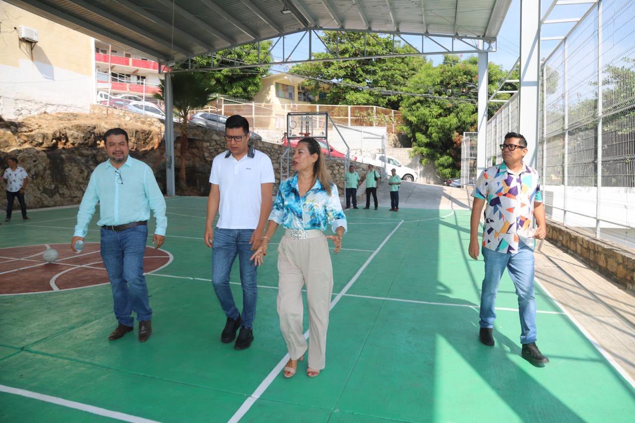 Lleva a cabo la M.C. Marcela Meza Pastrana, el corte del listón por la reinauguración del techado de la Cancha de Usos Múltiples de la Sección XXIV.