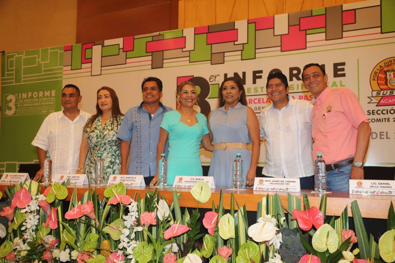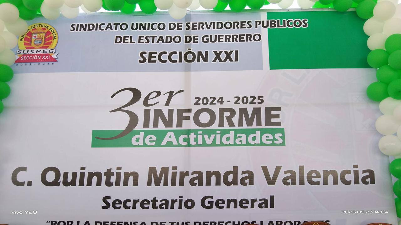 Asiste la M.C. Marcela Meza Pastrana Secretaria General de la Sección XXIV, al Tercer Informe de Actividades del C. Quintin Miranda Valencia Secretario General de la Sección XXI, dónde estuvo presente nuestra máxima líder sindical, la C.P. Adela Hernández Angelito Secretaria General del Comité Central Ejecutivo del SUSPEG